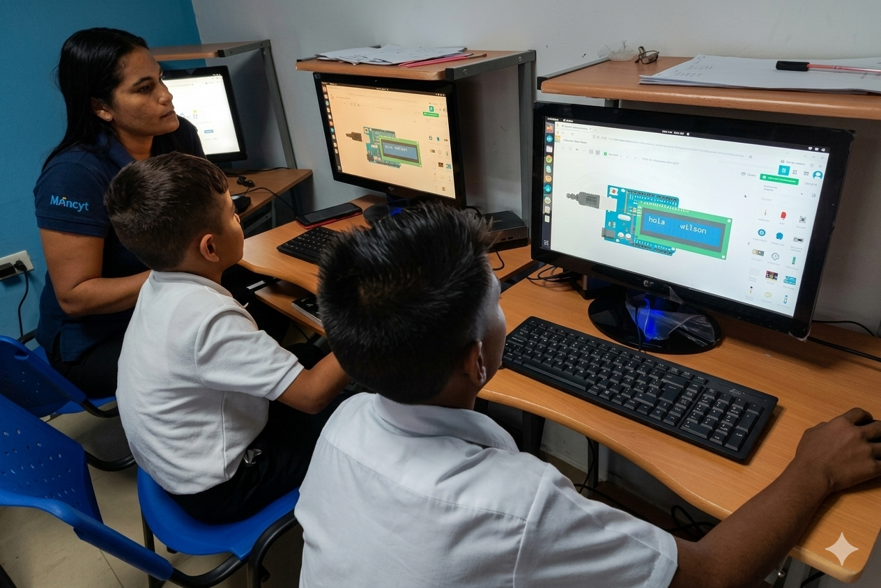Como base fundamental para su crecimiento en el área de ciencia y tecnología, los estudiantes se iniciaron en el mundo de la electrónica digital mediante el taller de Tinkercad. A través de esta herramienta, los niños y niñas aprendieron a crear, editar y simular proyectos electrónicos desde temprana edad, realizando circuitos y programación con modelos de placa Arduino, sensores y actuadores.