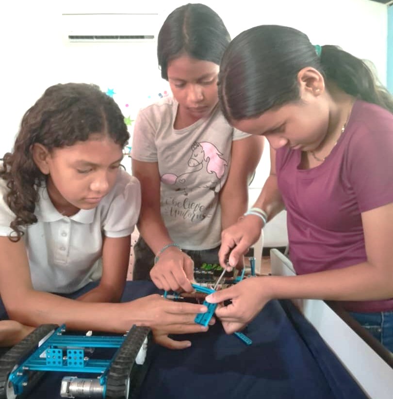 En el marco del Día Internacional de la Mujer y la Niña en la Ciencia, en el NRBOL 15 Chinak Merù se llevó a cabo un exitoso maratón STEAM. Que reunió a 20 niñas que provienen de la U.E La Esperanza y Comunidad de Villa Aponwao en el municipio Caroni estado Bolívar y 9 mujeres, quienes participaron activamente en un taller de Robótica Educativa y Creativa, que sirvió de inspiración en el interés por la Ciencia, Tecnología, la Ingeniería y las Matemáticas, está jornada contó con la participación de las facilitadoras de Infocentro Bolívar María Parra, Marisela Brito y Caren Cardiel.