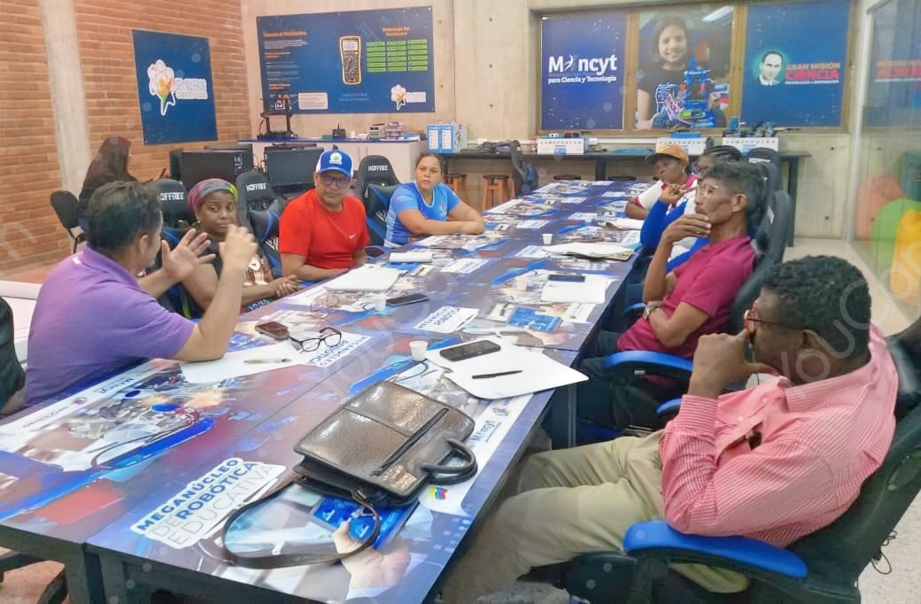 Prensa Infocentro Yaracuy / Cesar Chirinos.- En una reunión celebrada en el Mega Núcleo de Robótica del Infocentro Félix Pifano ubicado en el Centro Didáctico para la Enseñanza de las Ciencias de la ciudad de San Felipe, operadores locales de CONADECAFRO y parte de la dirección estadal de Infocentro Yaracuy acordaron una serie de acciones para la conformación de comunidades de aprendizaje a la que denominaron “Cumbes Digitales”. El encuentro, previamente acordado por Yony Oliveros operador del municipio Independencia y Cesar Chirinos Coordinador de Infocentro, quienes establecieron lo concerniente para llevar adelante la actividad en la que también estuvieron Ramón Díaz, Merxis Sánchez, Selenis Martínez, Francy López, Elisa Gutiérrez y Carla Aparicio, esta última coordinadora de Formación de Infocentro Yaracuy.