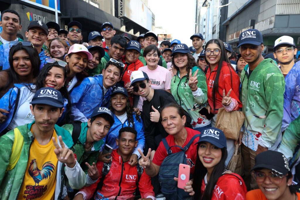 Con la energía vibrante que caracteriza a la generación del futuro, jóvenes trabajadores y trabajadoras de la Fundación Infocentro se sumaron este jueves a la multitudinaria movilización por el Día de la Juventud. Desde la emblemática Plaza Venezuela hasta la histórica esquina de San Francisco, miles de jóvenes provenientes de cada rincón del país convirtieron la Avenida Universidad en un río de esperanza. En cada consigna se sentía el latir de un pueblo que, a pesar de las adversidades, sigue apostando por el conocimiento como herramienta de liberación y construcción colectiva.
