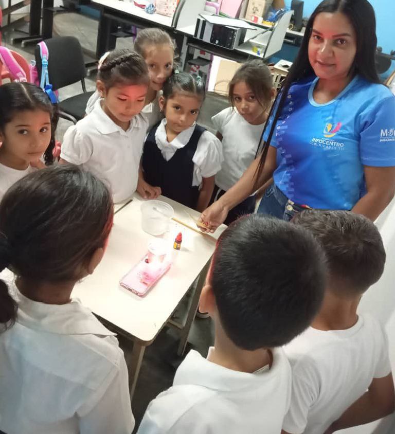 En el Infocentro Curbatí de la parroquia José Félix Rivas Curbatí, Municipio Pedraza, Barinas, se llevó a cabo el taller científico «Divirtiéndonos con la Ciencia: La Lámpara de Lava». Participaron 23 estudiantes entusiastas de la Escuela Básica Nacional Enrique María Castro, específicamente de 3er grado, sección «A» con edades entre 8 a 11 años. La jornada se centró en fomentar el amor por el conocimiento a través de la experimentación lúdica.
