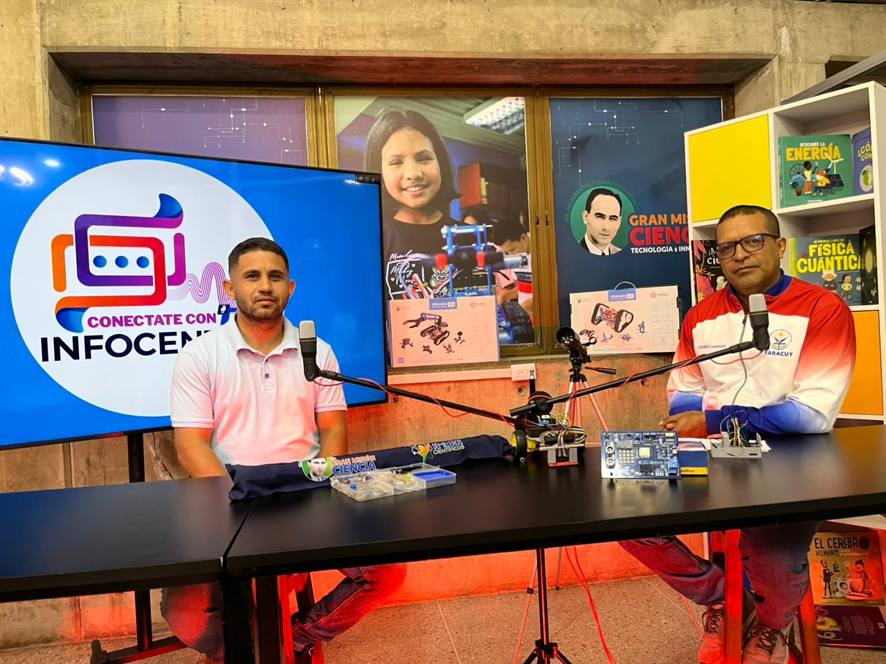 En el marco de la celebración del segundo aniversario de la Gran Misión Ciencia, Tecnología e Innovación Dr. Humberto Fernández Morán, se llevó a cabo el cuarto episodio del podcast Conéctate con Infocentro Capitulo Yaracuy, un espacio conducido por César Chirino, jefe estadal de Infocentro en Yaracuy. En esta edición especial, se contó con la participación del ingeniero Miguel Solórzano, quien se desempeña como presidente de Fundacite Yaracuy y coordinador regional de la referida Gran Misión. Durante el encuentro, ambos profundizaron en la ejecución de los cinco vértices estratégicos que definen este proyecto nacional, subrayando el impacto positivo que han tenido en el desarrollo científico del estado.