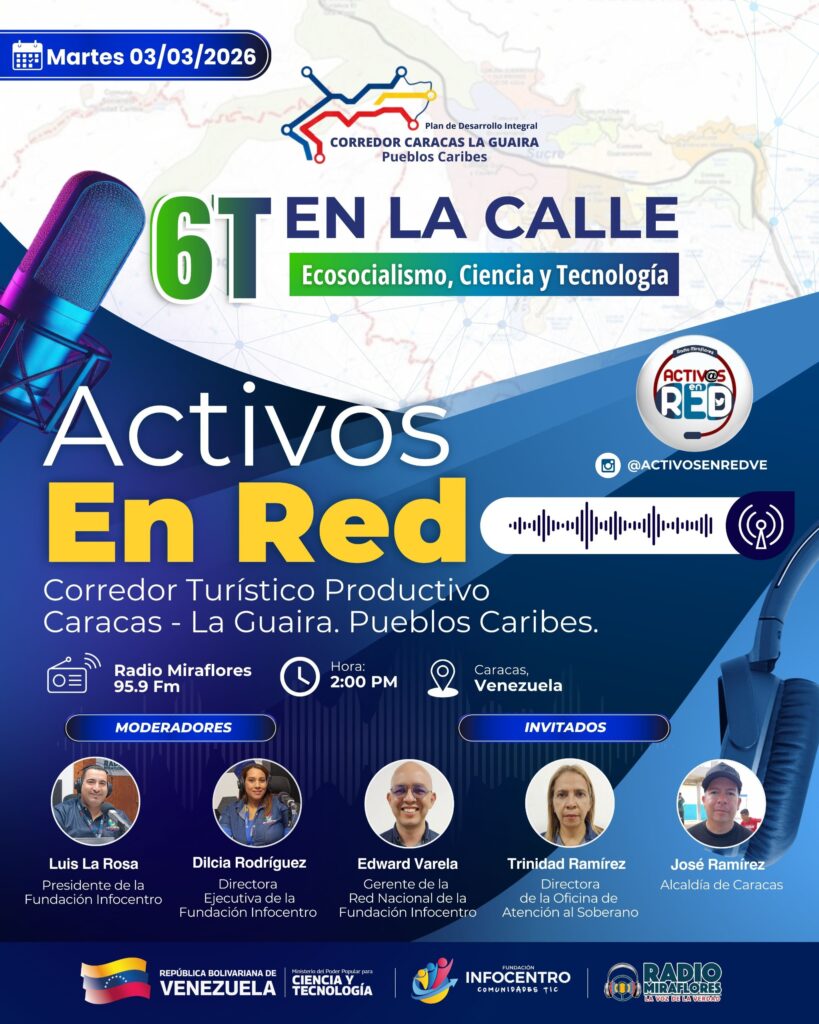 Asimismo, el invitado José Antonio Ramírez, representante de la Alcaldía de Caracas, aportó una visión estratégica sobre el desarrollo ecosocialista en el eje territorial de la capital. Desde el estudio de «Activos en Red», Ramírez detalló los planes de fiscalización ambiental y la promoción de la Sexta Transformación (6T) dentro del corredor «Pueblos Caribes». El programa sirvió como escenario para explicar cómo la tecnología y la preservación de la vida deben ir de la mano para construir un modelo de ciudad más humano, sostenible y tecnológicamente independiente.