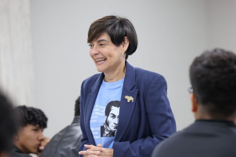 La rectora de la Universidad Nacional de las Ciencias Dr. Humberto Fernández-Morán, Gabriela Jiménez Ramírez, sostuvo un encuentro con estudiantes de la carrera de Inteligencia Artificial (IA), en el que reflexionó sobre el papel de la ciencia y la tecnología en la sociedad actual y la necesidad de orientar su desarrollo hacia el bienestar integral de los pueblos.