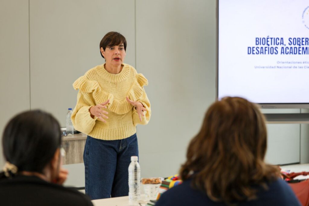 En un encuentro desarrollado con docentes de la cátedra de Bioética, la rectora de la UNC abordó “las orientaciones éticas y pedagógicas necesarias para afrontar el impacto de los bombardeos registrados el pasado 3 de enero”.